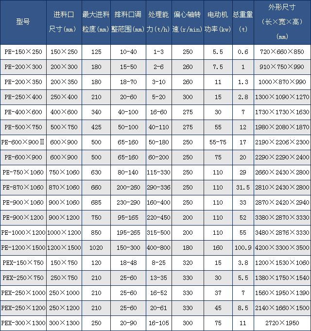 ○ 進(jìn)料粒度:125mm~1020mm