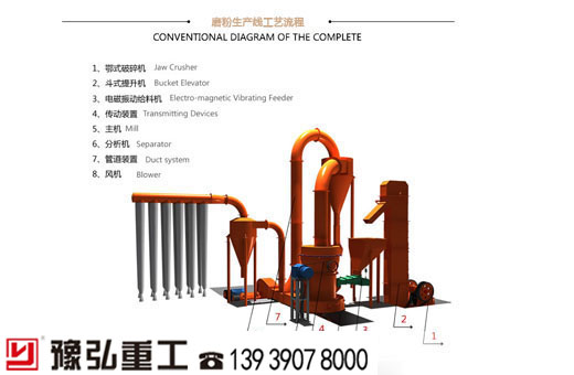 豫弘重工不僅能為廣大用戶提供選擇性廣、配套合理、質(zhì)量可靠、性價比高的工業(yè)磨粉機生產(chǎn)線,而且還能提供磨粉作業(yè)的整體設(shè)計和施工方案,以及磨粉領(lǐng)域的交鑰匙工程。磨粉生產(chǎn)線通常由顎式破碎機、斗式提升機、電磁振動給料機、磨粉機主機、分析機(選粉機)、輔機、風機、集中電控等設(shè)備組成,根據(jù)用戶的不同需要磨粉生產(chǎn)線磨機可選擇配置高壓懸輥磨粉機、梯形磨粉機、雷蒙磨粉機、三環(huán)中速微粉磨粉機等。